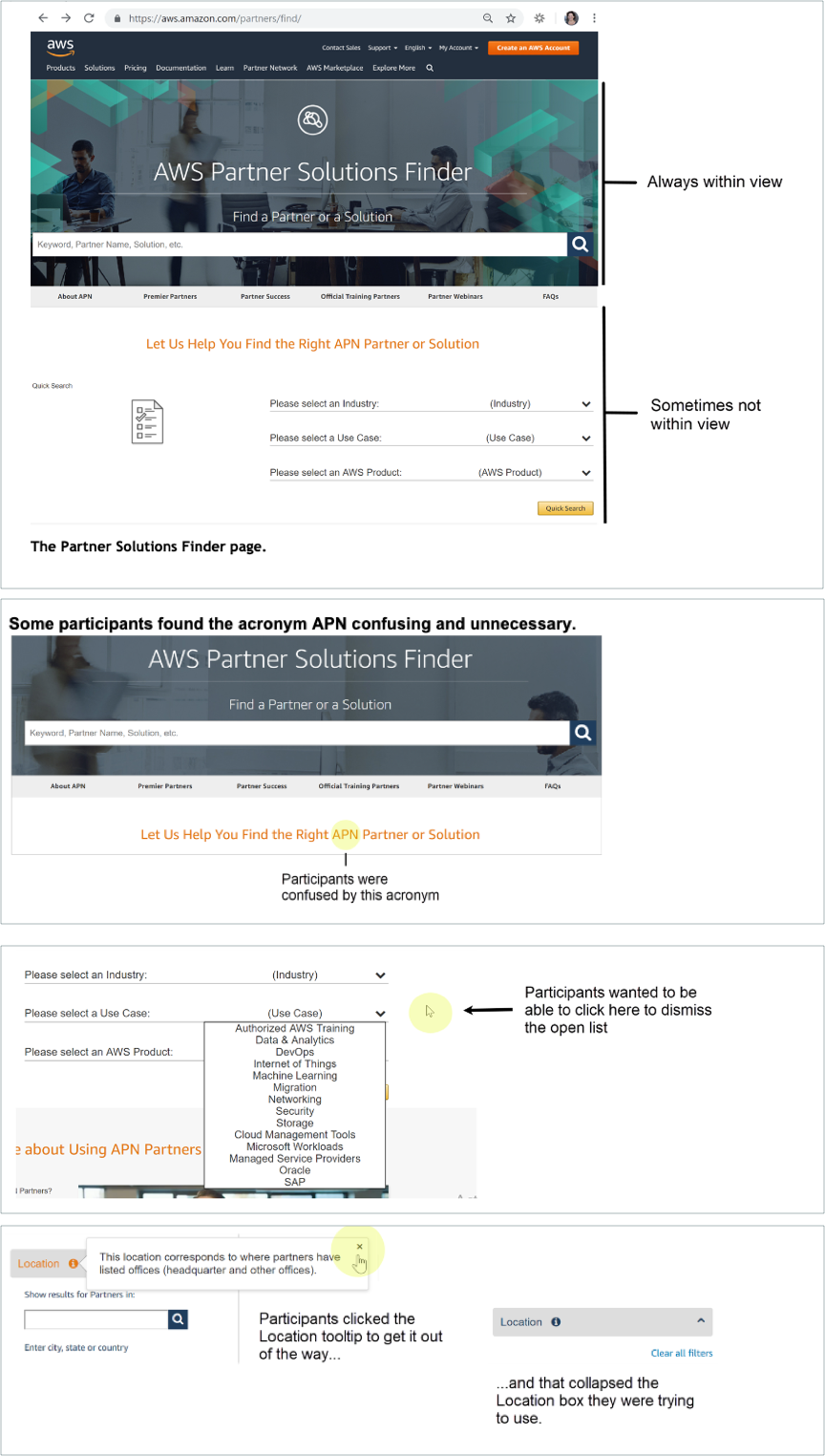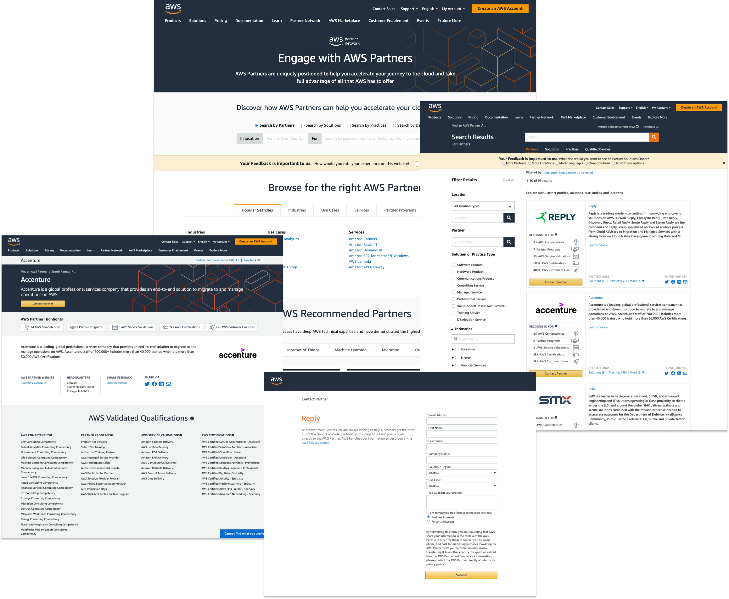Allows AWS end customers to search for a curated set of partners based on their filtered criteria selection. Partner Solution Finder is tailored for end customers and also serves as a feedback mechanism where end customers can supply customer satisfaction (CSAT) scores for partners.