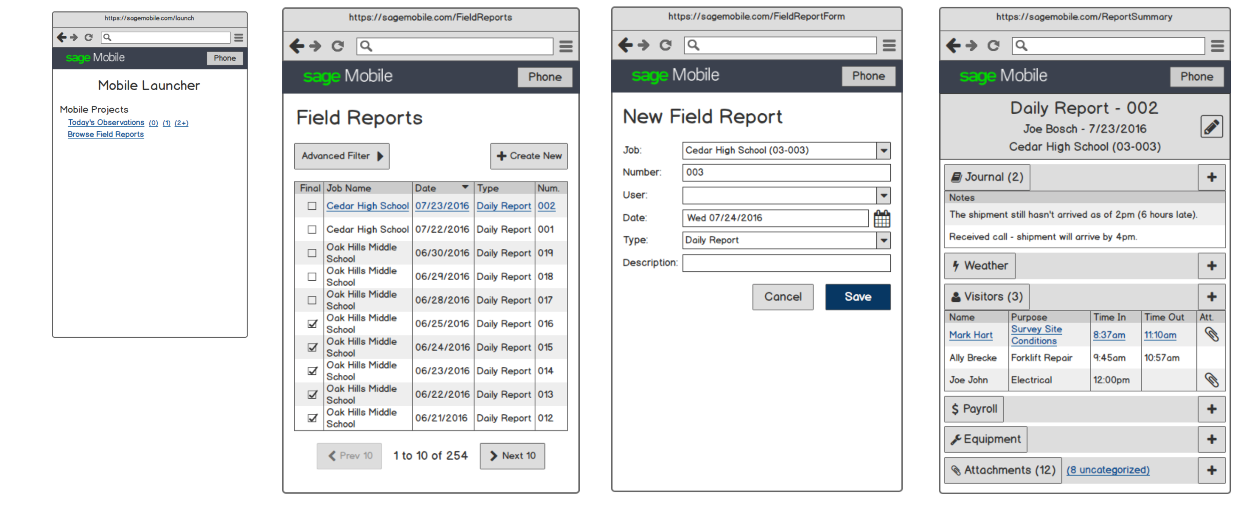 User can report on the events of each day on the job.